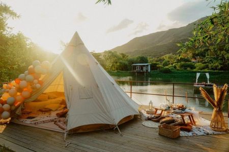 露營還有什麼好地方?介紹大家全港獨家,風景一流,魚塘邊觀景台,於竹林下體驗不一樣的露營生活,遠眺元朗雞公嶺,Chill住Glamping!觀景台採用木板作建築,印第安營位分兩個尺寸,Small Size 及 Big Size,可以過夜入住或半日野餐聚會。配有獨立冷氣和歡迎寵物入場,讓你享受到更舒適的露營體驗!