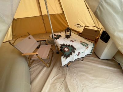 設施包括:(供2人使用):印第安營 (3.5m X 3.5M)、氣墊床 X 2、花布 X 1、復古營燈 X 1、露營⽊枱 X 1、露營⽊櫈 X 2、串燈 X 1、冷氣機 X 1 (*只限7-10月)