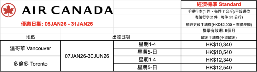 主頁 > 最新旅遊情報 > 優惠情報 > 【機票優惠】 加拿大航空公司機票優惠