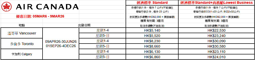 加拿大航機票優惠