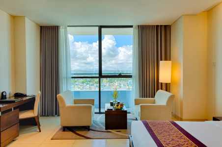 客房擁有典型的越南風格裝飾,以及有多種房型讓你選擇,包括:城景高級房、海景高級雙床房、市景高級雙床間、總統套房,海景房更能每天都看着日出起床。房間均設設有迷你吧、電熱水壺和帶熱水淋浴的私人浴室。
