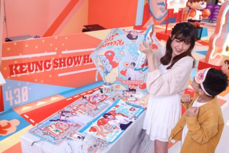 而處於銅鑼灣皇室堡的「22+1=Keung To慈善限定店」同樣以桃橙色作主調,以多首姜濤的作品說出其故事,充滿普普藝術風的6大打卡位!配搭型格十足的幾何圖案場景,展示姜濤的重要「事件簿」:❶表演、❷美食,當然還有❸籃球!約2米高立體淘氣小濤濤手捧籃球正在練習灌籃,不禁令人期待於即將播映的電視劇「季前賽」中欣賞姜濤在球場上的英姿呢!