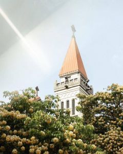 聖德肋撒堂被列為香港一級歷史建築,以歐陸風教堂為背景,加上燦爛盛放的黃白色魚木花海,能拍出身處外國般的感覺!魚木花期分別是3月至5月及9月至10月,但以春季末段最為盛放,大家上去打卡要把握機會!