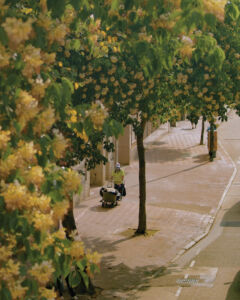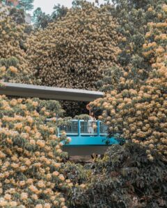 在連接旺角亞皆老街與大角咀櫻桃街的行人天橋也被魚木樹包圍,遠遠拍過去,像花團錦簇的夢幻仙境!
