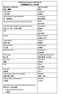 - 以港幣200元購買原價港幣400元現金券(一套2張、每張200元)