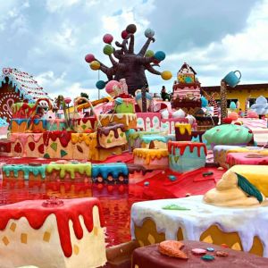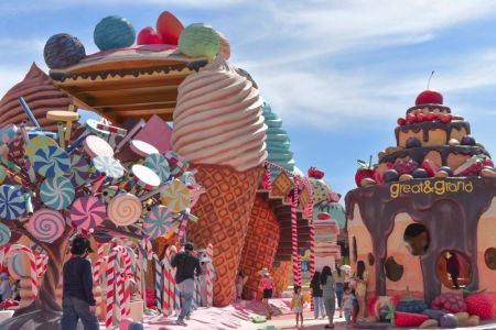 是否曾幻想過進入滿是甜點的世界?現在被各種甜點包圍的夢想成真啦!走入巨大冰淇淋、巨型糖果樹旁,或在巨型糖果屋等穿梭!
