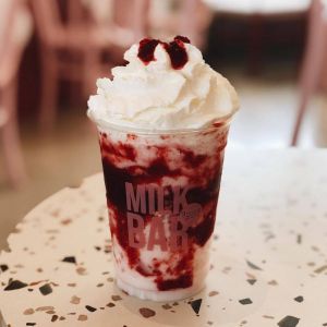 主題樂園中還設有兩個能夠品嘗美食的服務區,包含鑲有透明窗戶,整間充滿柔和粉色調的甜點飲料店。