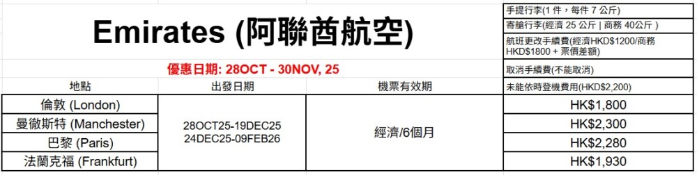 香港>杜拜>倫敦>杜拜>香港(大約9小時)