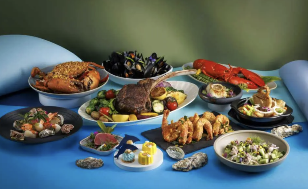 - 「堂弄鮮嚐海鮮盛宴」3.5小時自助晚餐,以十大頂級海鮮為食材入饌,包括:生蠔、麵包蟹🦀、 蟹腳、凍龍蝦🦞、藍青口、翡翠螺、帶子刺身、大虎蝦🦐、鐵板燒、爐端燒及杜拜朱古力
