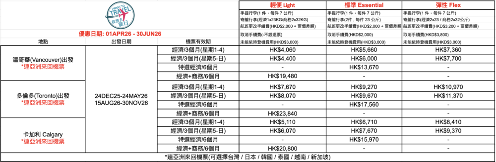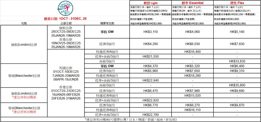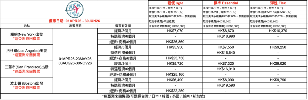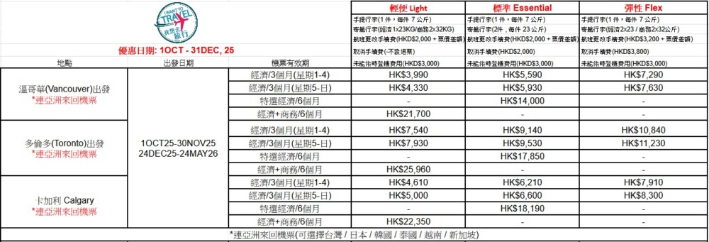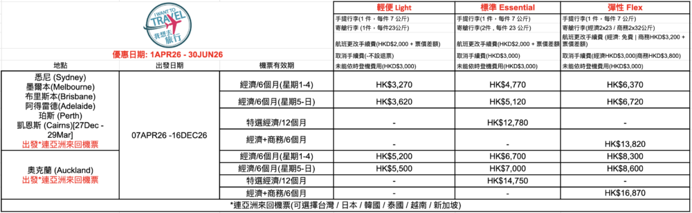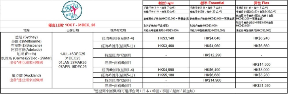 *機票優惠由外地出發往香港!