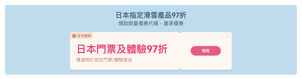 - 滑雪 Pass、裝備租借、交通、獨家95折私人滑雪課程、滑雪課程、一日遊都有優惠!