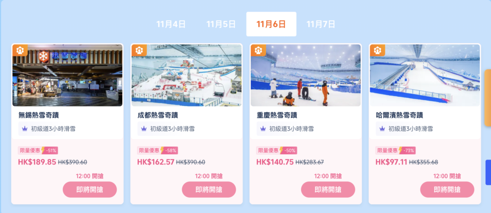- 4/11 – 14/11 每日12pm開搶,低至27折