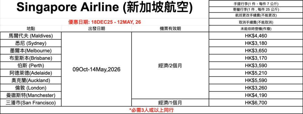 *價錢會因季節性而調整,價錢未連機場稅及燃油費,最終報價請向我們查詢,請把英文姓名,出發/回程日期Whatsapp給我們!