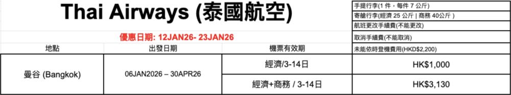 【機票優惠】 泰國航空機票優惠 Thai Airways