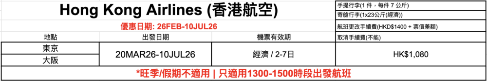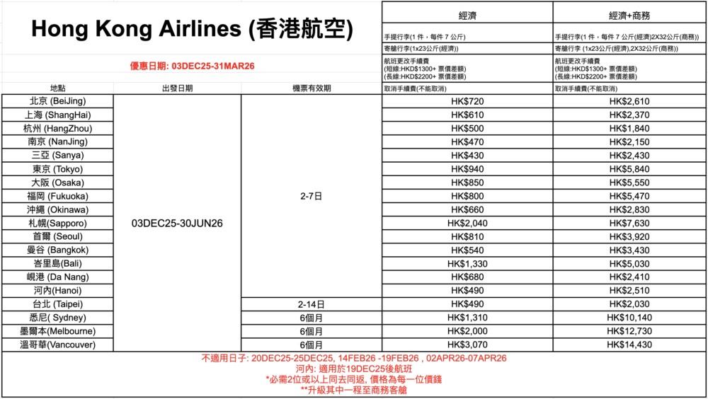 Hong Kong Airlines 香港航空機票優惠