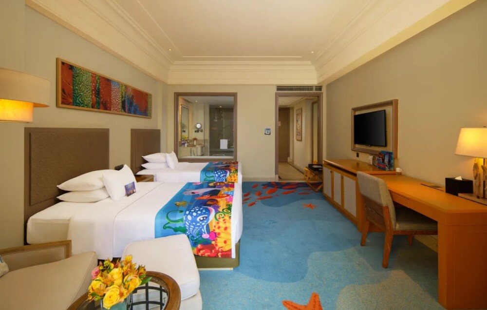 酒店客房各具海洋特色,獨立的觀景陽台盡享開闊景觀,感受愜意與私密的住宿體驗。8間風味各異的餐廳及餐吧眾星羅列,賓客可在此品嚐到西方及泛亞洲各式美食。寬敞靈活的會議場地,專業齊備的會議設施與殷勤周到的服務,呈現出色超羣的會議新體驗。