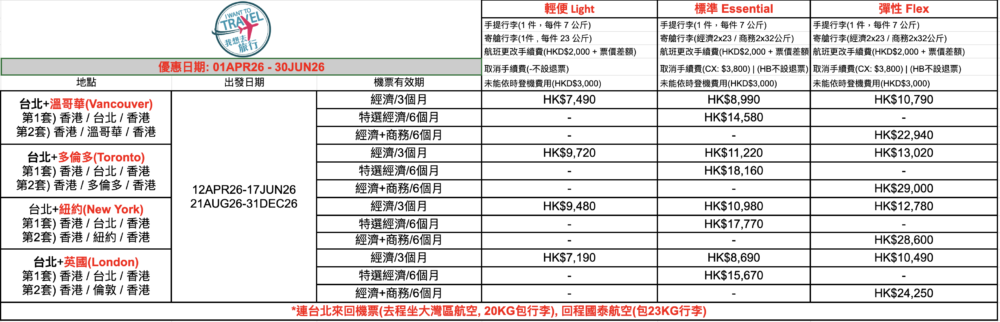 *價錢會因季節性而調整,價錢未連稅金以及燃油附加費費用,最終報價請向我們查詢,請把英文姓名,4段航班之出發/回程日期Whatsapp給我們!