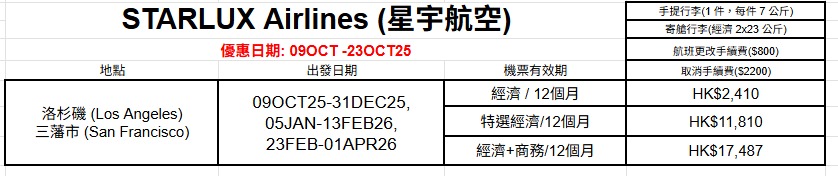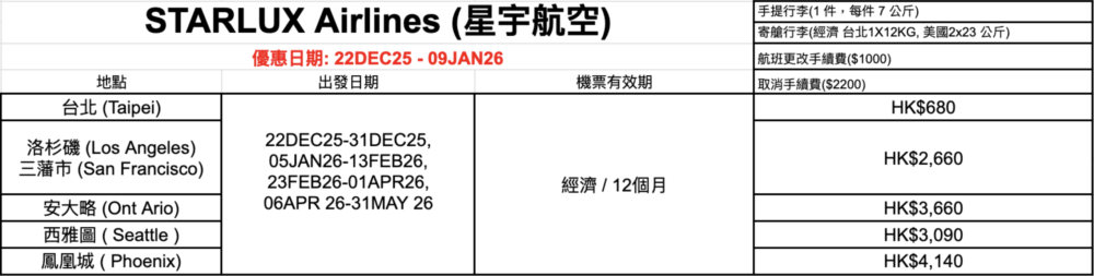 星宇航空香港/洛杉磯機票優惠