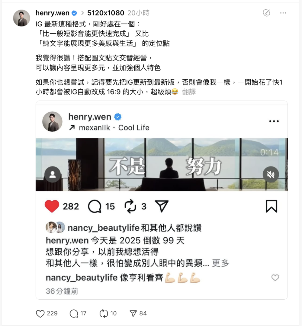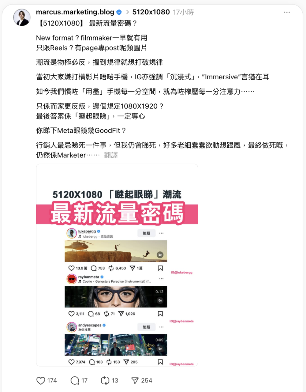 網上流傳只要用「5120X1080」的尺寸上載影片,就可以獲得IG流量支持!
