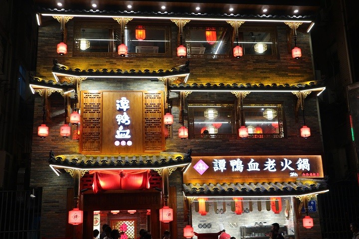 若嚮往市井煙火氣,譚鴨血老火鍋會帶來別樣驚喜。未開火先見紅火,每口鍋都貼著傳統紅紙,在服務員的吉祥話中揭鍋開運。招牌鴨血歷經八小時老滷浸泡,氣孔間飽含湯汁,在麻辣鍋中翻滾後依然保持驚人嫩度。南山旗艦店每晚飄香,等位時翻動竹編簸箕裡的滷味,已是一番享受。
