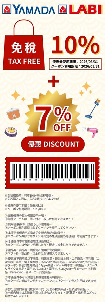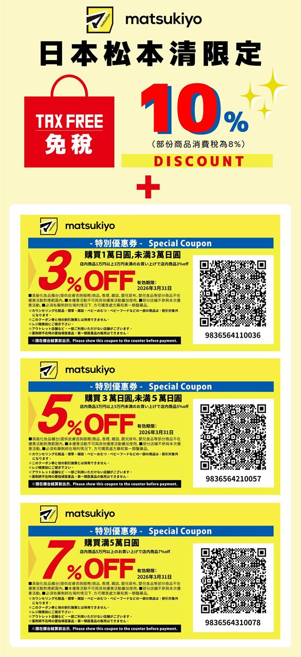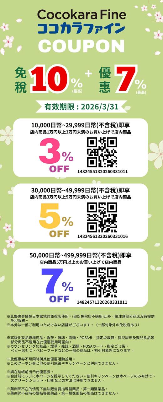 同文附上2026日本優惠券!以下優惠券均在付款時出示即可用~