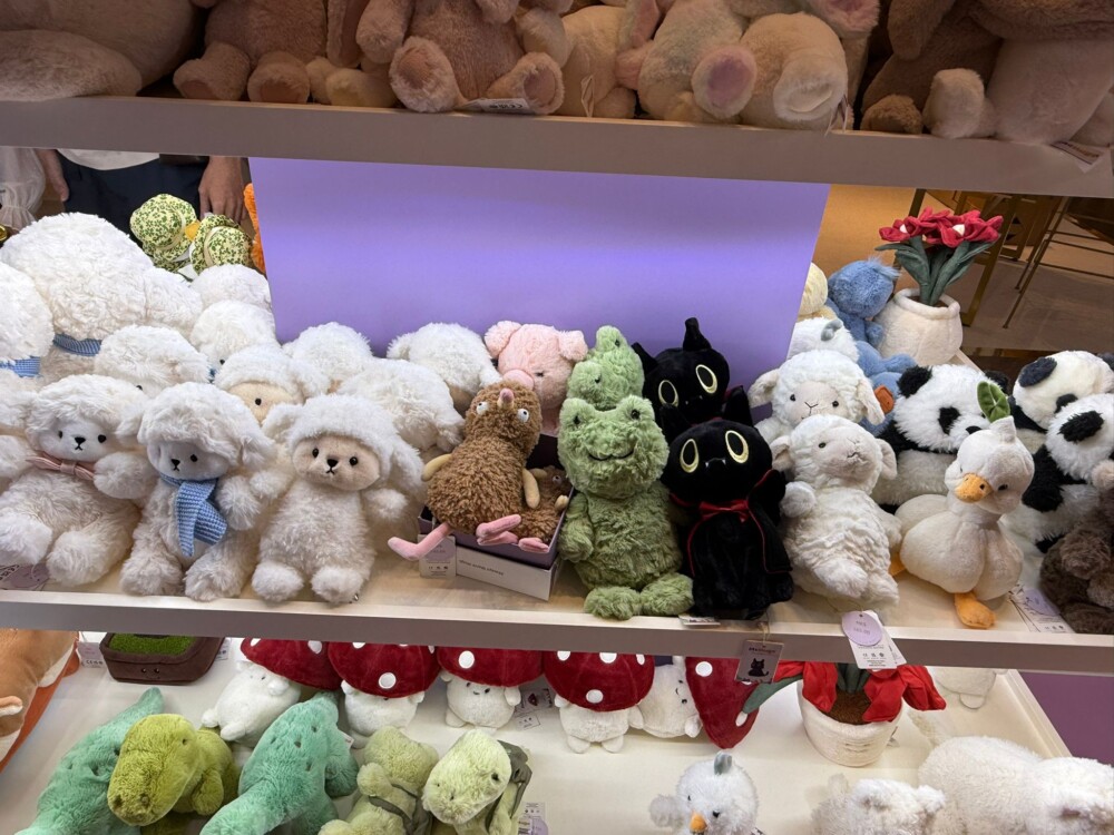 • Jellycat:以其 「世界上最柔軟」 的材質聞名,尤其是經典的Bashful Bunny系列,觸感極佳。 設計上更強調趣味與創意,將各種食物、動物甚至日常物品擬人化,表情俏皮,細節精緻。