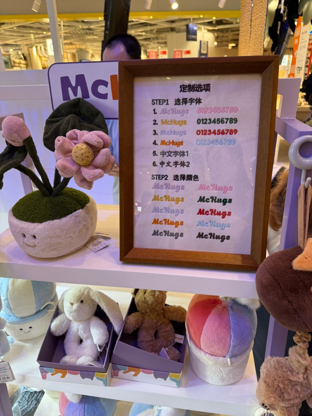 好消息是,現在你可以在實體店親身體驗McHugs的可愛魅力!McHugs目前在香港K11 MUSEA有限定店,可以親身感受McHugs實體玩偶,也可以選擇繡字服務~