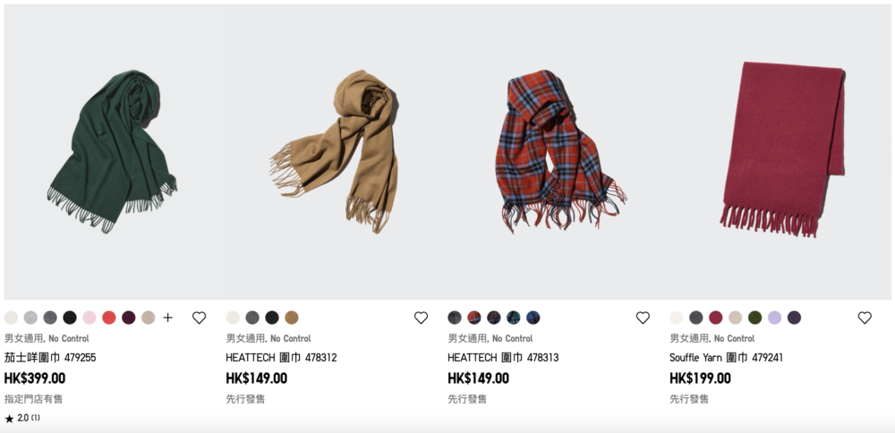 Uniqlo的圍巾價格合理之餘非常百搭,顏色選擇多,款式都能夠融合我們各項穿搭。