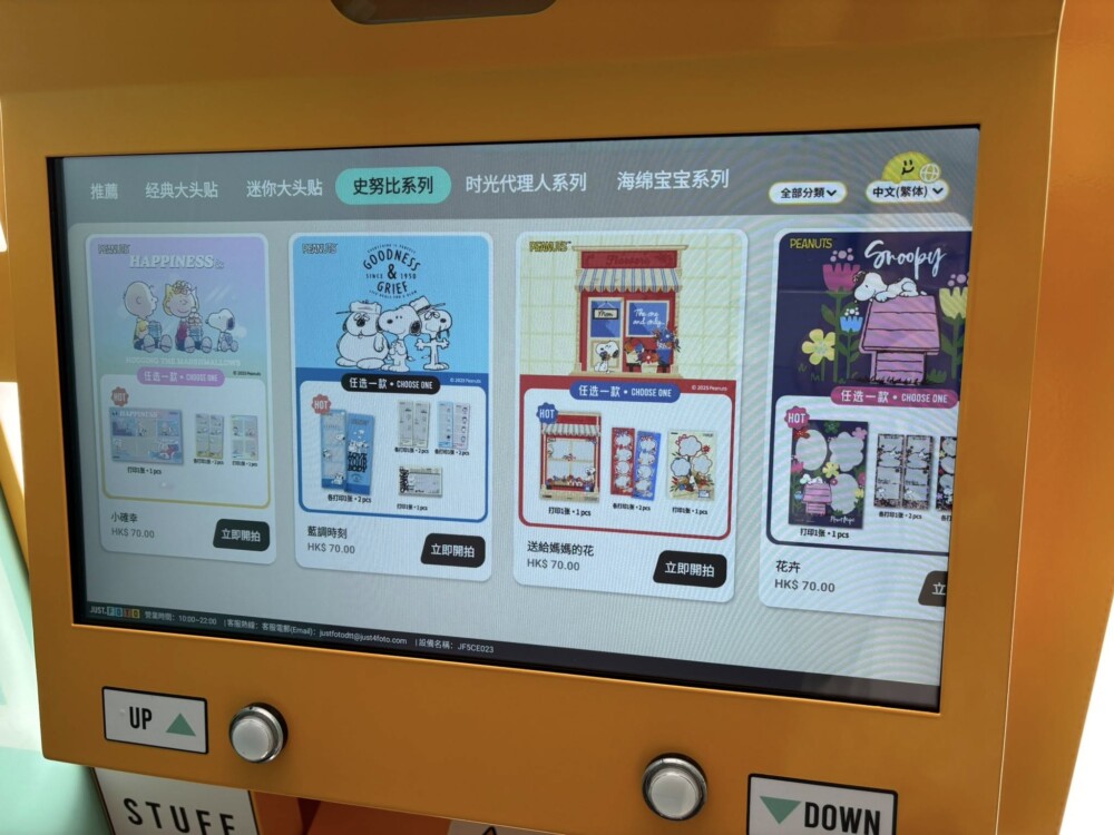 史努比的共有七個不同的主題,每個主題任選一個拍照相框,場內的展示板上也可以看自拍機有的款式。