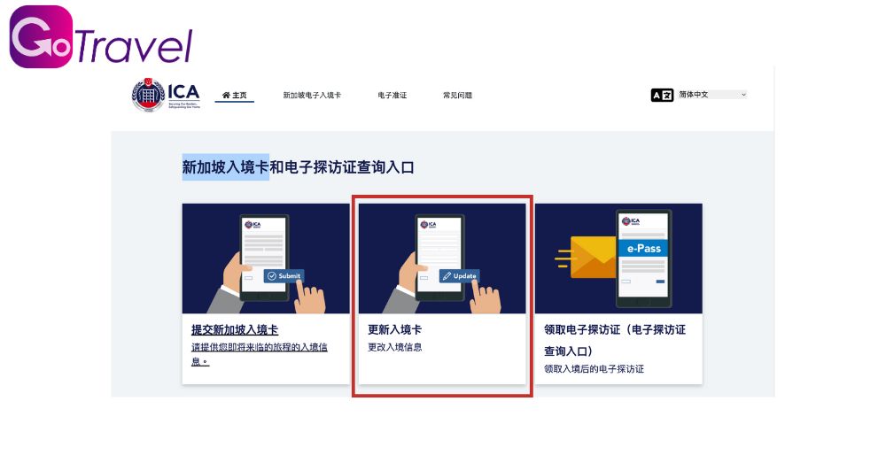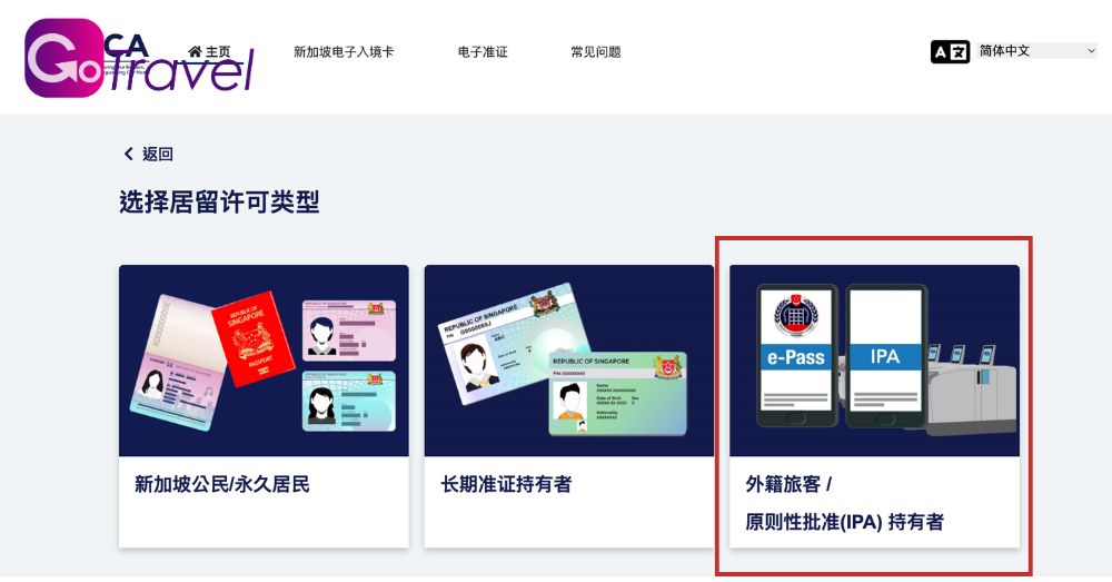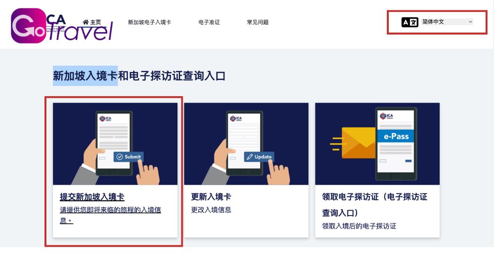 1 | 右上角可選擇簡體中文進行填寫,並選擇「提交新加坡入境卡」。