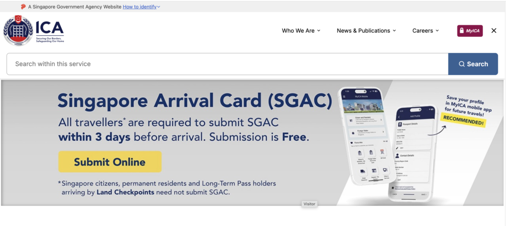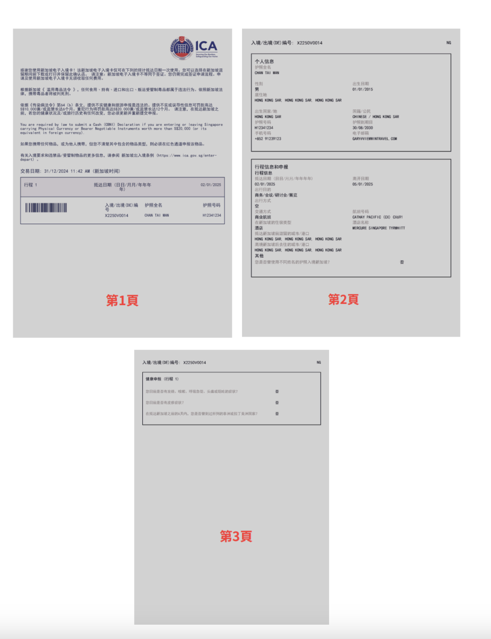 電子入境卡(SG Arrival Card):必須在抵達新加坡前3天內,透過官方網站填寫電子入境卡。