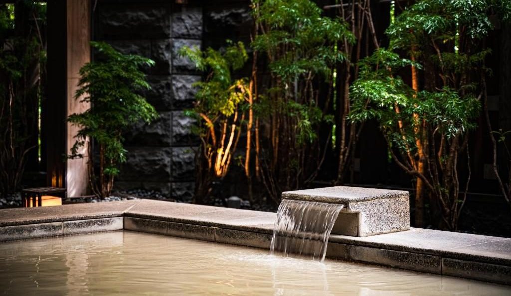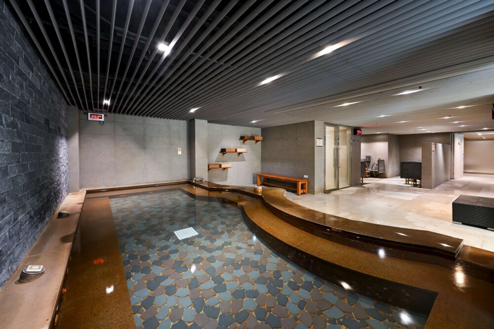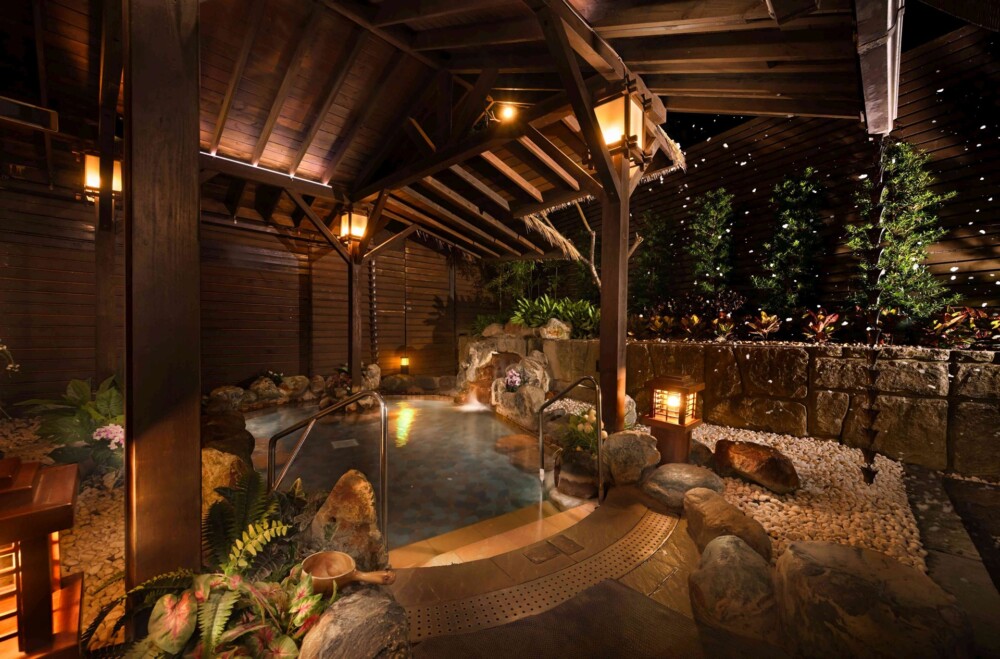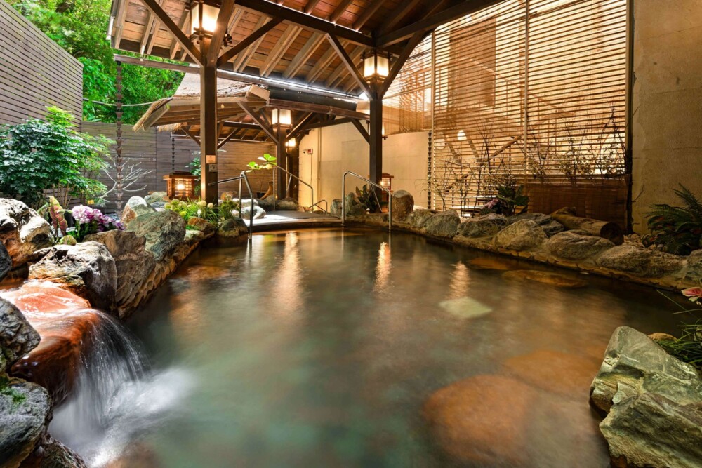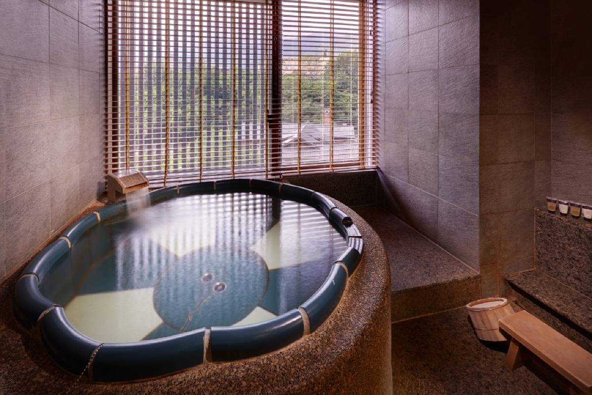 溫泉設施包含挑高9米中庭花園式的露天風呂、寬敞戶外風呂與靜謐的獨立木質湯屋。個人湯屋以木質調的隱密空間為設計,每間湯屋皆配備獨立衛浴設備、舒適柔軟的臥榻與梳洗台。