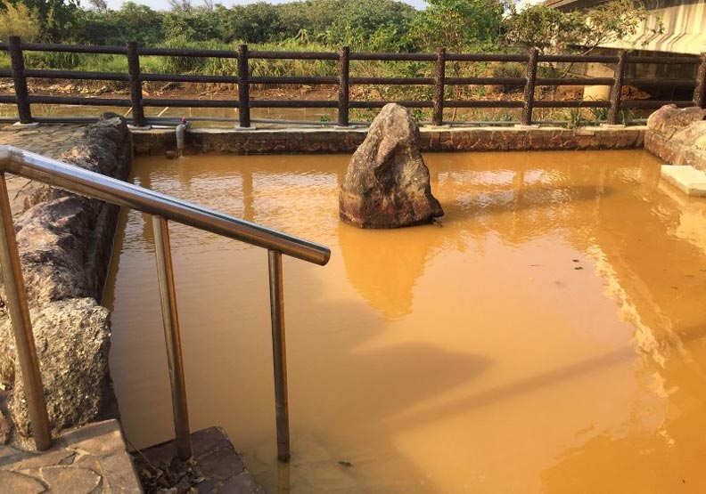 鐵磺:有鐵質沉澱物,水色呈淡紅褐色,故稱鐵磺,為中性碳酸泉。