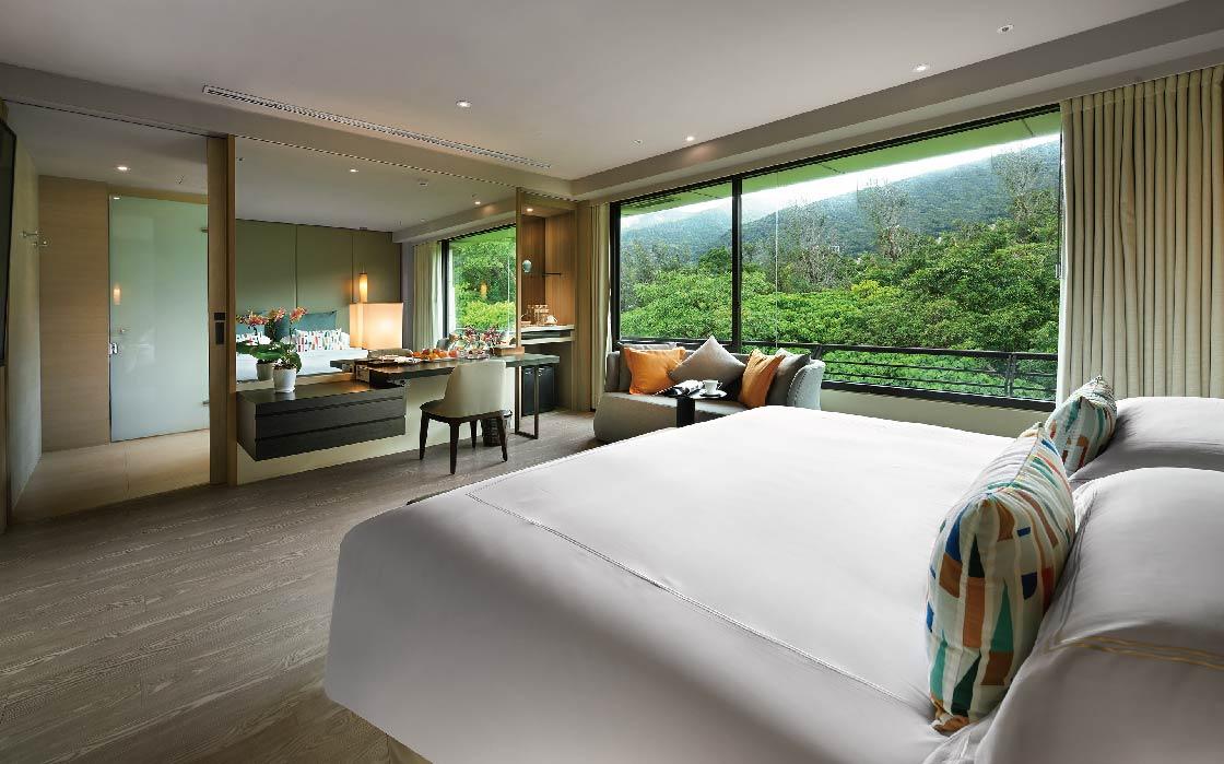 總共66間低調奢華的客房,間約雅緻,每間皆有私人露台,可以坐擁蓊鬱山景。