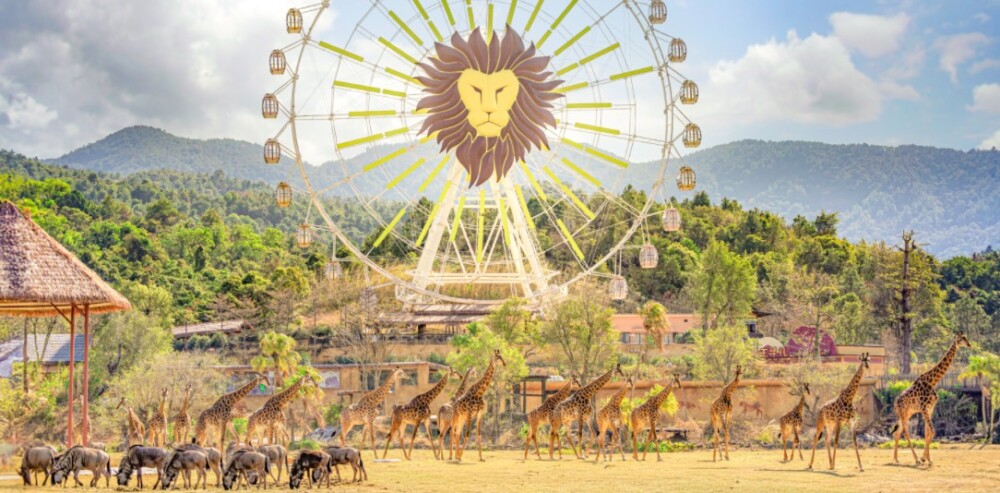 登頂探索非洲獅,乘坐獅王摩天輪,俯瞰清遠長隆森林大生態。
