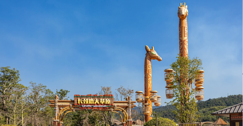 清遠長隆度假區首期用地4000餘畝,包含長隆森林王國、長隆長頸鹿城堡酒店及長隆森林溫泉樂園。依託清遠自然生態優勢,全球珍稀野生動物大種群在清遠長隆正式“安家”。