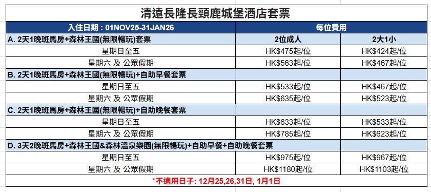 *以上價格會因季節性和優惠期而調整,最終報價請聯絡我們查詢。