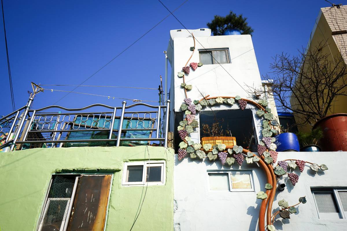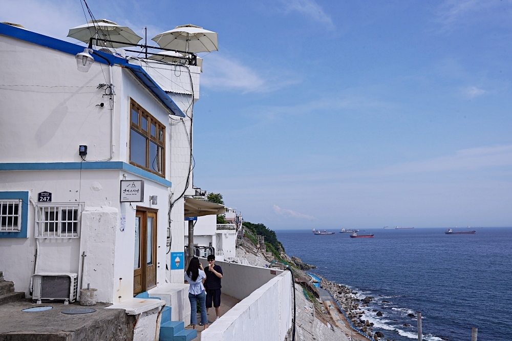 位於影島的白淺灘文化村,沿著1.7公里的海岸懸崖而建,擁有與甘川洞截然不同的海洋風情。這裡原本是韓國戰爭後難民的聚居地,如今轉型為充滿文藝氣息的觀光景點。