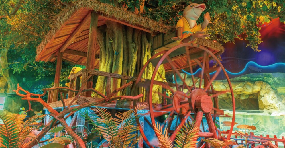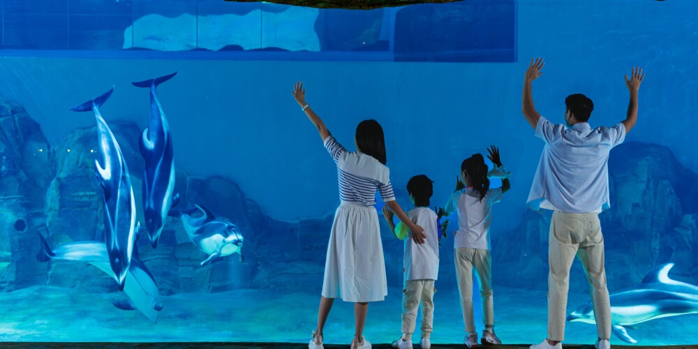 亞細亞星球,展示的是各種水系及生物的多樣性。包含濕地生態及其特色生物如紅樹林、橫琴蠔和一級保護珍稀魚類——黃唇魚,世界唯一在淡水棲息的貝加爾海豹,優雅活潑的太平洋斑紋海豚,中國的四大家魚及體現老祖宗智慧的魚稻共生,大河文明的水底隧道,水中三大巨魚淡水巨鰩、虎頭鯊、巨骨舌魚都在這裡等你。