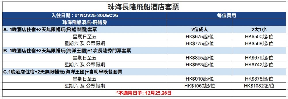 珠海長隆酒店套票