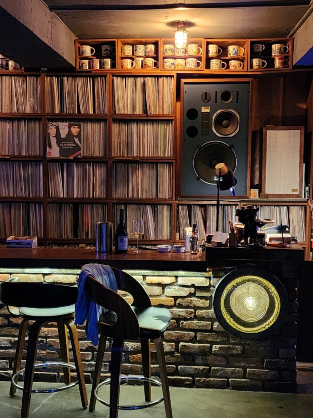 特別的是,這裡提供點歌服務,客人可以寫下想聽的歌曲,由專業DJ現場播放。招牌調酒「Vinyl Old Fashioned」在經典作法中加入自製的楓糖糖漿,口感更加圓潤順口。每週五、六晚上還有現場DJ演出,復古的音樂配上懷舊的裝潢,讓人彷彿穿越回首爾的黃金年代。