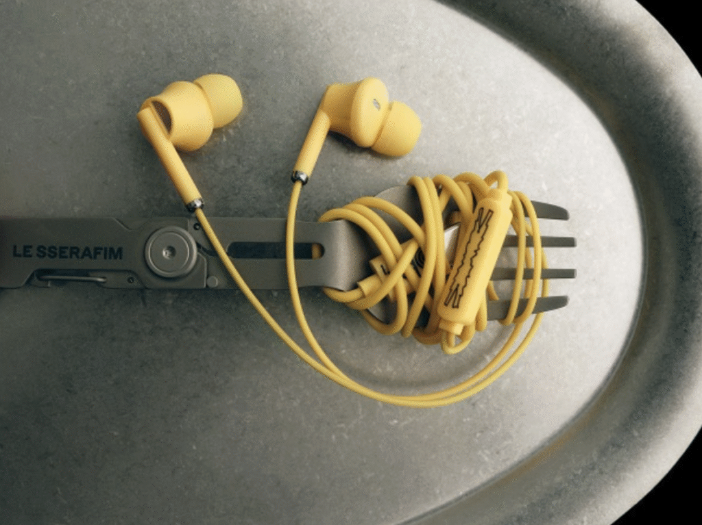 韓國女團 LE SSERAFIM 近期為回歸新曲〈SPAGHETTI〉推出專屬周邊,其中一款亮黃色有線耳機瞬間成為話題焦點。