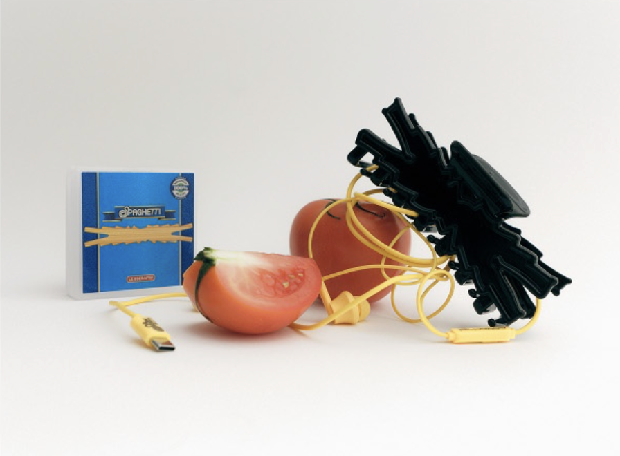 這款耳機最特別之處在於設計概念——整條耳機線纏繞成螺旋狀的樣子就好像義大利麵,完美呼應歌曲主題,可愛又富有創意。