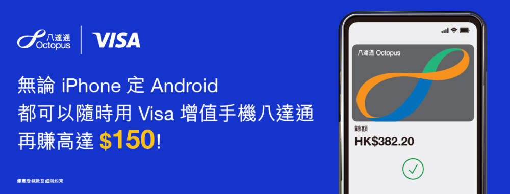 • 適用對象:iPhone/Apple Watch八達通、Android八達通、Samsung Pay內的Smart Octopus用戶