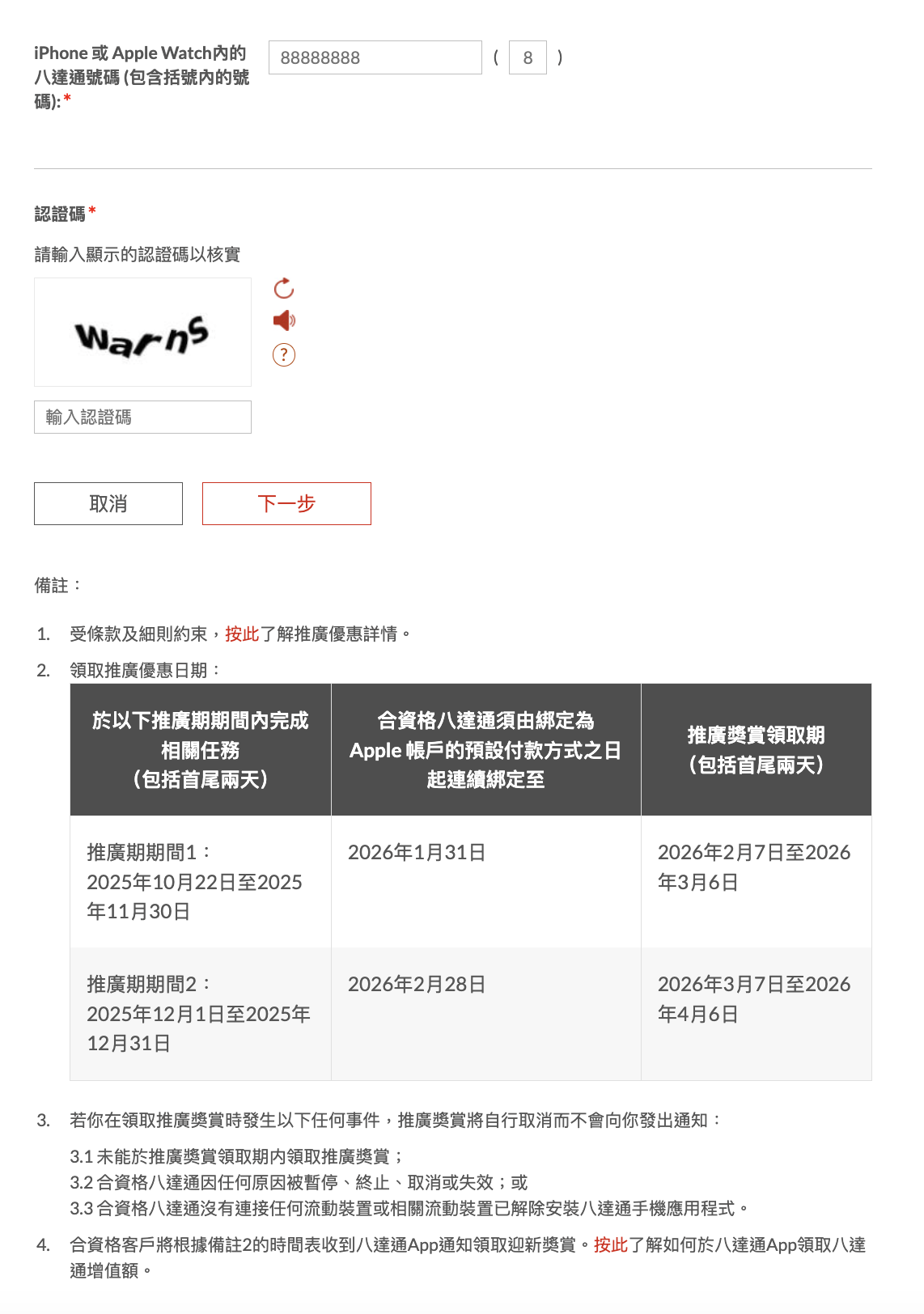 • 若獎賞名額已滿,八達通將於官方網站公佈
