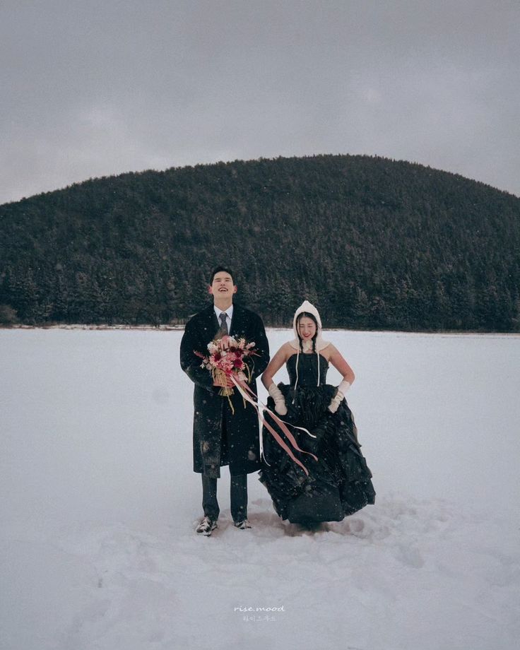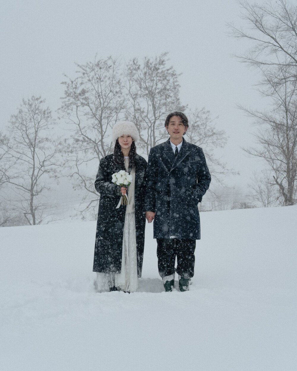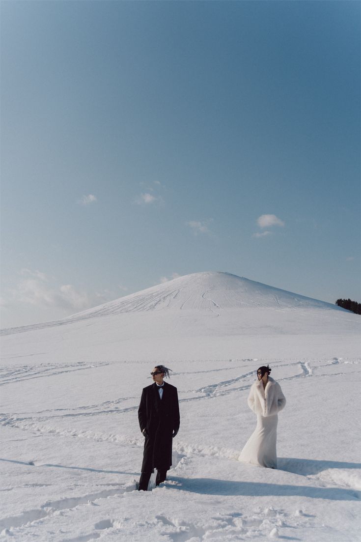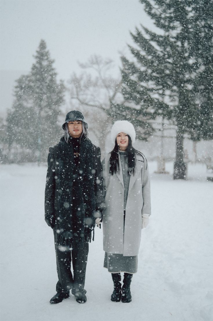 最近非常流行呆站的感覺,加上本身雪地的氛圍感,清淨的浪漫感油然而生。