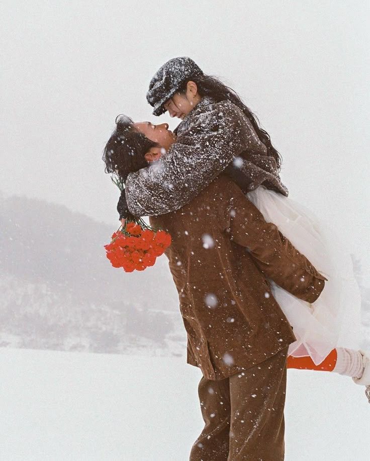 看著對方就會不由自主地笑出來,這不就是愛嗎?(笑)無論是就這樣坐著還是相擁,配搭上雪景猶如韓劇中的主角般令人隔著螢幕都覺得甜蜜!