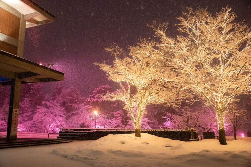 白天欣賞城堡與櫻花的壯麗搭配,夜晚則有華麗的點燈活動,讓夜櫻展現完全不同於白天的神秘魅力。