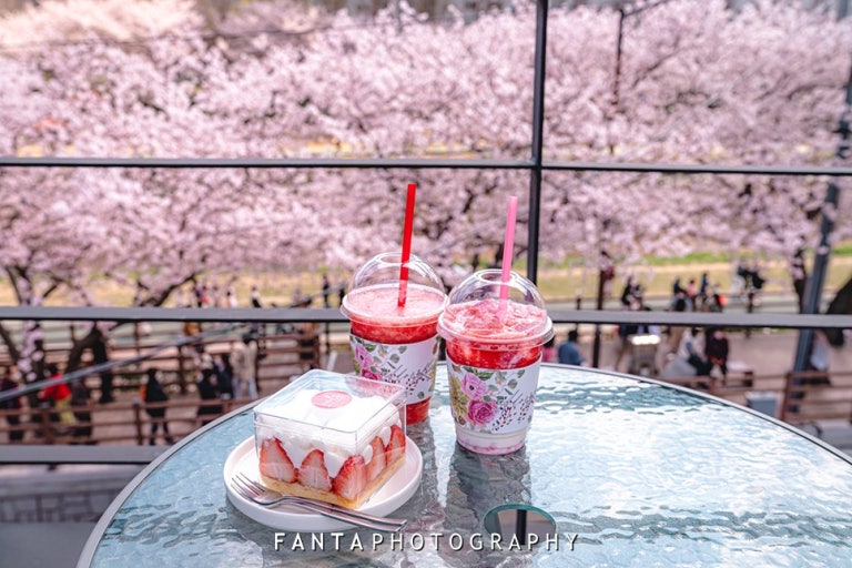 你可以挑選一家帶有露台的咖啡廳,點一杯手沖咖啡或特色飲品,就這樣坐在櫻花樹下,看著花瓣偶爾飄落到河面上,享受一整個下午的寧靜。