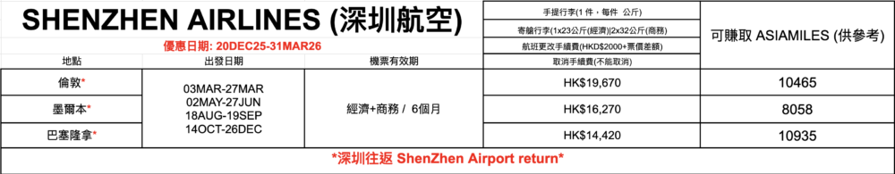 【機票優惠】 深圳航空 Shen Zhen Airlines